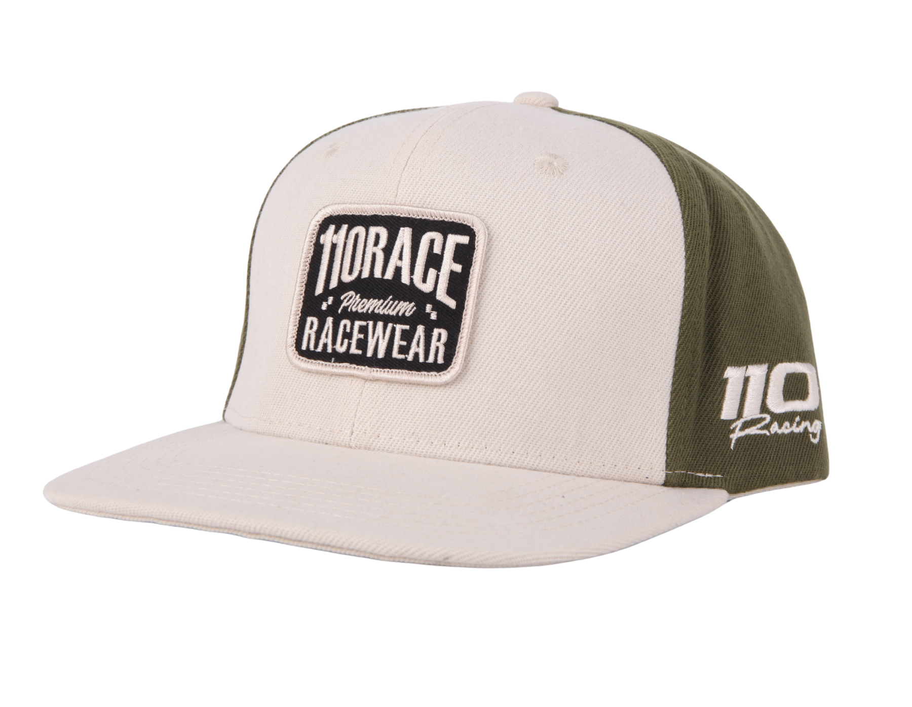 Inside, every detail counts — with custom 110 Racing branded taping and labeling to reinforce the quality behind the ESSENTIALS line. Finished with a structured crown, flat bill, and adjustable snapback closure, it’s a hat you’ll reach for daily.